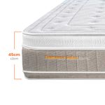 Con 45 cm de altura, este colchón combina lo mejor de la tecnología avanzada y los materiales de última generación, creando una superficie que no es ni demasiado firme ni demasiado suave, sino exactamente como debe ser. Su capa superior de espuma viscoelástica se amolda a cada curva de tu cuerpo, reduciendo los puntos de presión y brindando una sensación envolvente que te acompaña hasta el amanecer. Sus capas de espuma, están diseñadas con tres zonas de confort, que brindan independencia de movimiento y permitiéndote un descanso ininterrumpido y reparador.
