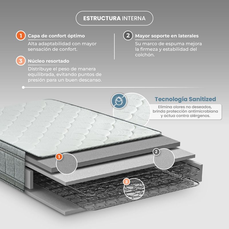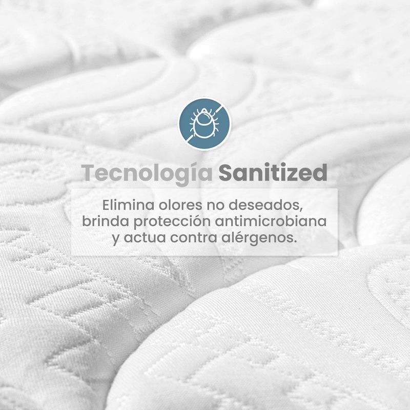 Su tela Sanitized no solo es suave al tacto, sino que también actúa como una barrera antimicrobiana, protegiéndote mientras duermes y asegurando un ambiente más higiénico.